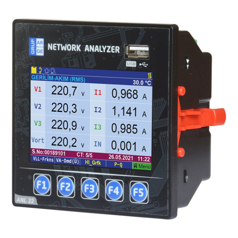 Şebeke analizörü: 3 faza ait akımları ve nötr akımını, faz–nötr ve faz-faz gerilimleri, frekansı, aktif ve reaktif güçleri, akım ve gerilim arasındaki açı farkını, güç faktörü ve her faza ait 1-63 arası akım ve gerilim harmonikleri ile akım ve gerilim Toplam Harmonik Distorsiyon değerlerini ölçüp ekranda izlenme imkânını verir. Bununla beraber, aktif ve reaktif enerjileri okur ve kaydeder.