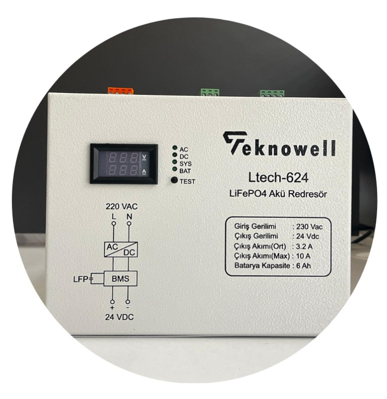 Endüstriyel tesis ve trafo merkezlerinde Enerji ihtiyaçlarınızı karşılamak için tasarlanmış Akım-Gerilim gösterge panelli ve alarm çıkış kontaklı bir DC güç kaynağıdır. Bir Lityum Demir Fosfat Akülü Redresör Sistemi olan LTec-624, en son teknoloji ve yeniliklerle donatılmıştır. Bu sistem, yüksek verimliliği ve uzun ömürlü LFP sayesinde 24 DC gerilimin gerekli olduğu tüm uygulamalarda kullanılmaktadır